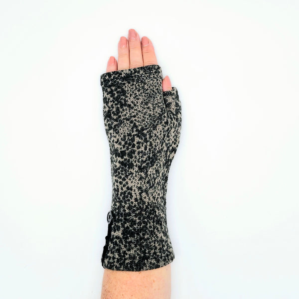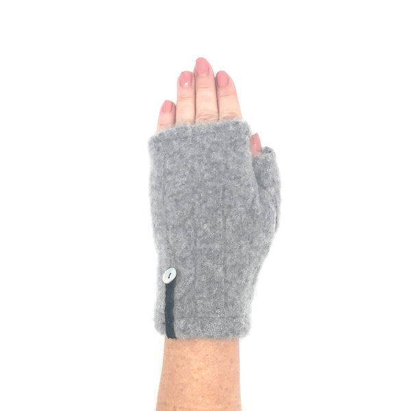 Available in Women's, Men's, and Kids' sizes and in two lengths, Short and Long. Comfortable for work, and you can still show off your mani. An infinite variety of colors and patterns are embellished with vintage lace, ribbons and buttons so each pair is unique. The recycled cashmere mittens are super soft!