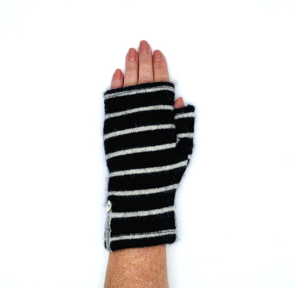 Available in a wide variety of patterns and fibers. Handmade in Seattle from all repurposed sweaters so each pair is unique. Embellished with vintage velvet, ribbon and button details and machine wash and dry.